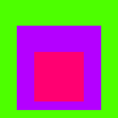 Albers Clock was an attempt to slow the pace of TinySketch even further; it visualises the current time in the form of an Albers square, with three colours, one each for hour, minute and second. I also like that it creates an image that is synchronous (within timezones, at least), unlike the asynchronous, individualised runtimes of most sketches.